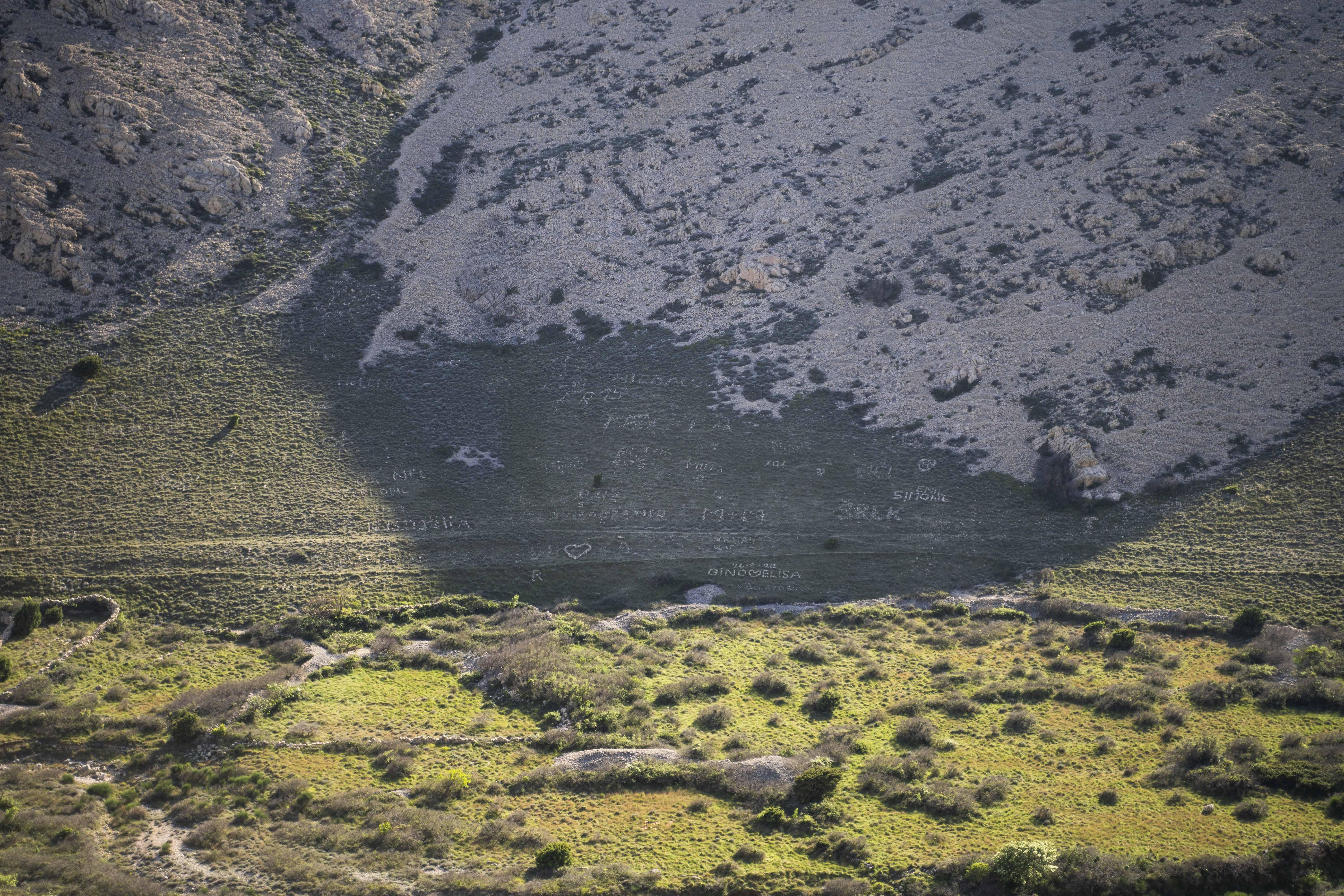 🇬🇧 On the way to Stara Baška, it’s worth stopping for a moment – not just for the view. If you look closely, you’ll notice stones arranged on the hillside forming names, hearts, and small messages. Travelers have left their mark here. A simple spot that becomes special at second glance.