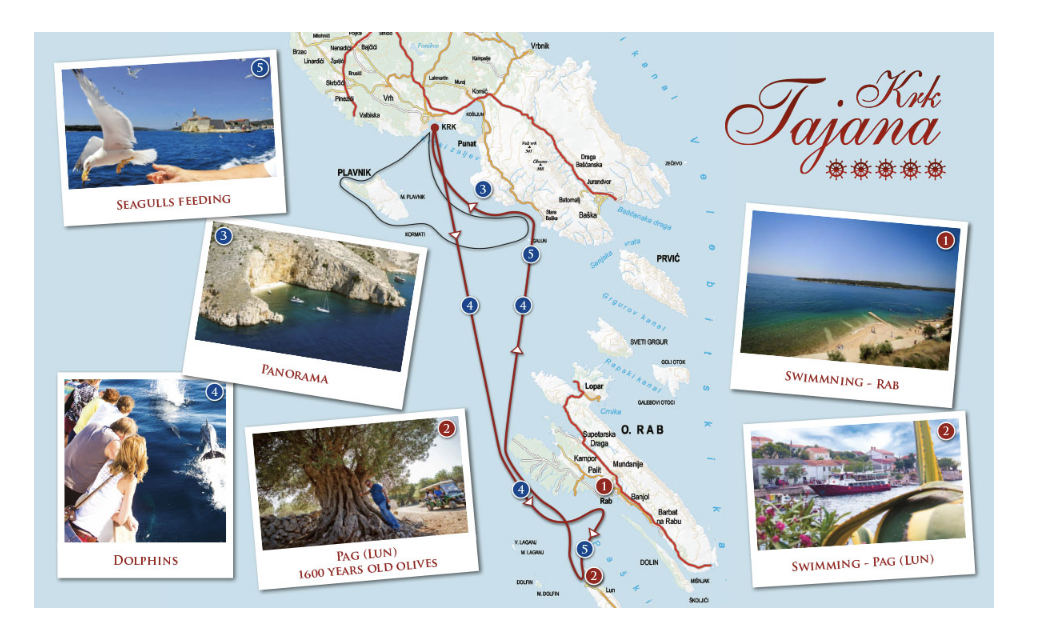 This full day boat trip takes you from Krk to the beautiful islands of Rab and Pag. Enjoy coastal views, swimming stops in crystal clear water and visits to charming historic towns. You will have plenty of free time to explore each place at your own pace.
