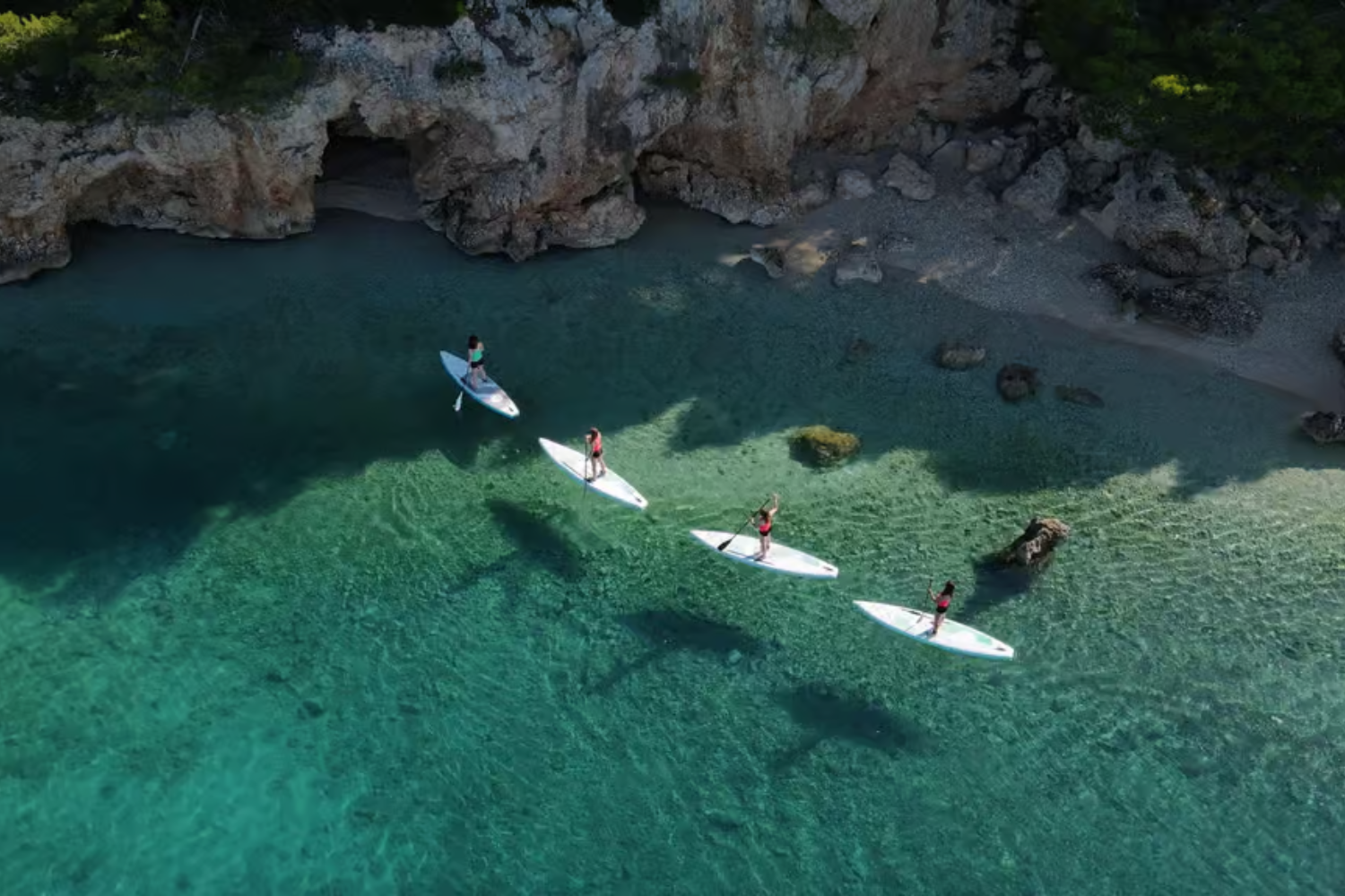 Uključeni su SUP, vodič, prsluk za spašavanje, dry bag i voda. Savršeno za aktivan i poseban doživljaj na moru oko Krka.